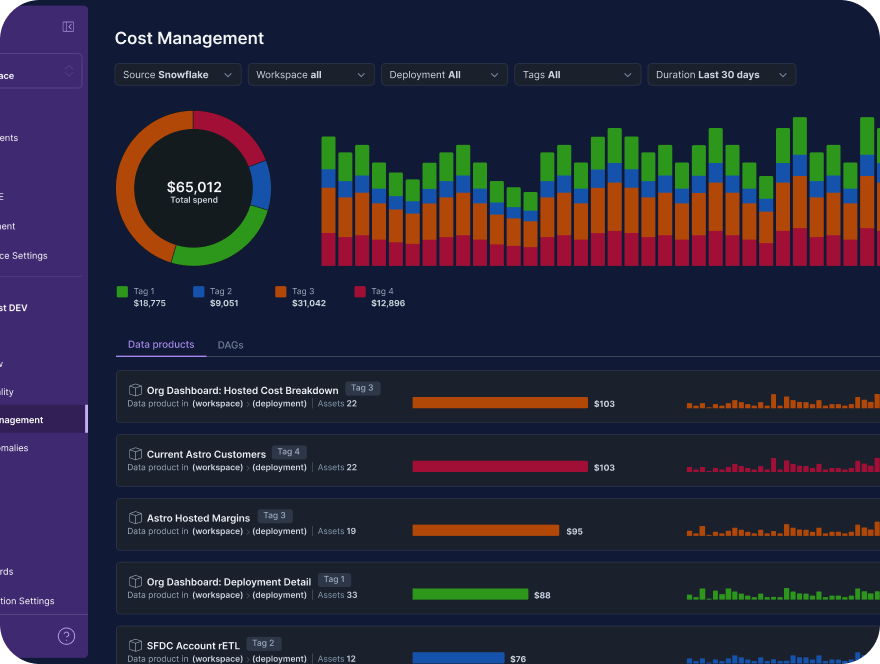 Attribute data warehouse spend to the pipelines, tasks, and products that drive it, giving you clear visibility into cost drivers and ways to optimize.