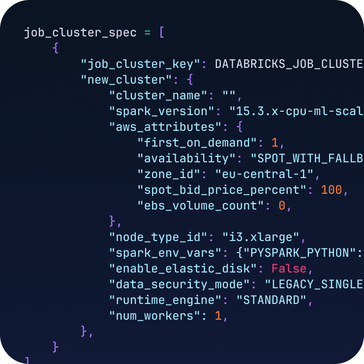 Job clusters start at $0.15/DBU compared to interactive workloads at $0.40/DBU—a 62% cost reduction. Airflow's DatabricksWorkflowTaskGroup automatically provisions job clusters that terminate after completion, eliminating idle costs. This delivers substantial savings for production ETL and ML workloads that don't require interactive development capabilities.
